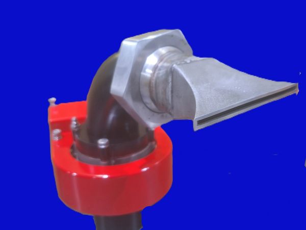 With this pipework a wide range of tasks can be performed. see the video section for more information. Pipework can be made in stainless steel or galvanised steel. It is mounted using stauf clamps. A 45 degree adaptor and a 90 degree adaptor are shown here. They can be moved to any position and are used to adjust the angle of the spray or to adjust range and droplet fall characteristics. They can be removed when not needed.
